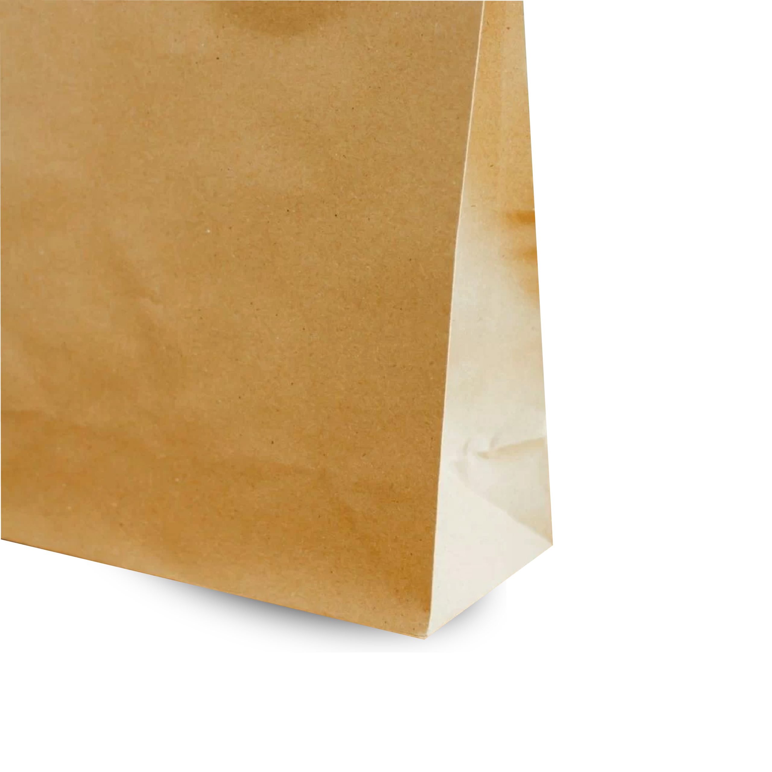 Bolsa de papel en material biodegradable sin impresión, listas para llevar. Medida de la bolsa 7×4.5×13 pulgadas. Pedido mínimo de 100 unidades.