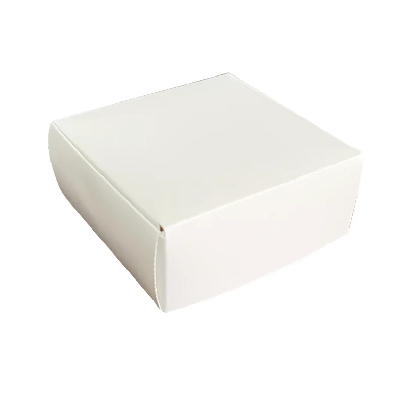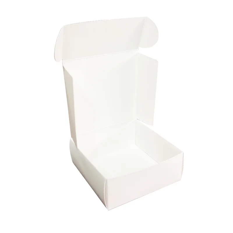 Caja de 8x8x5 pulgadas en cartoncillo sin impresión lista para llevar, puedes usarla para postres, alimentos o regalos. Si necesitas personalizarla puedes colocarle una viñeta o sticker (busca en la sección de Viñetas y agrega a la carretilla).