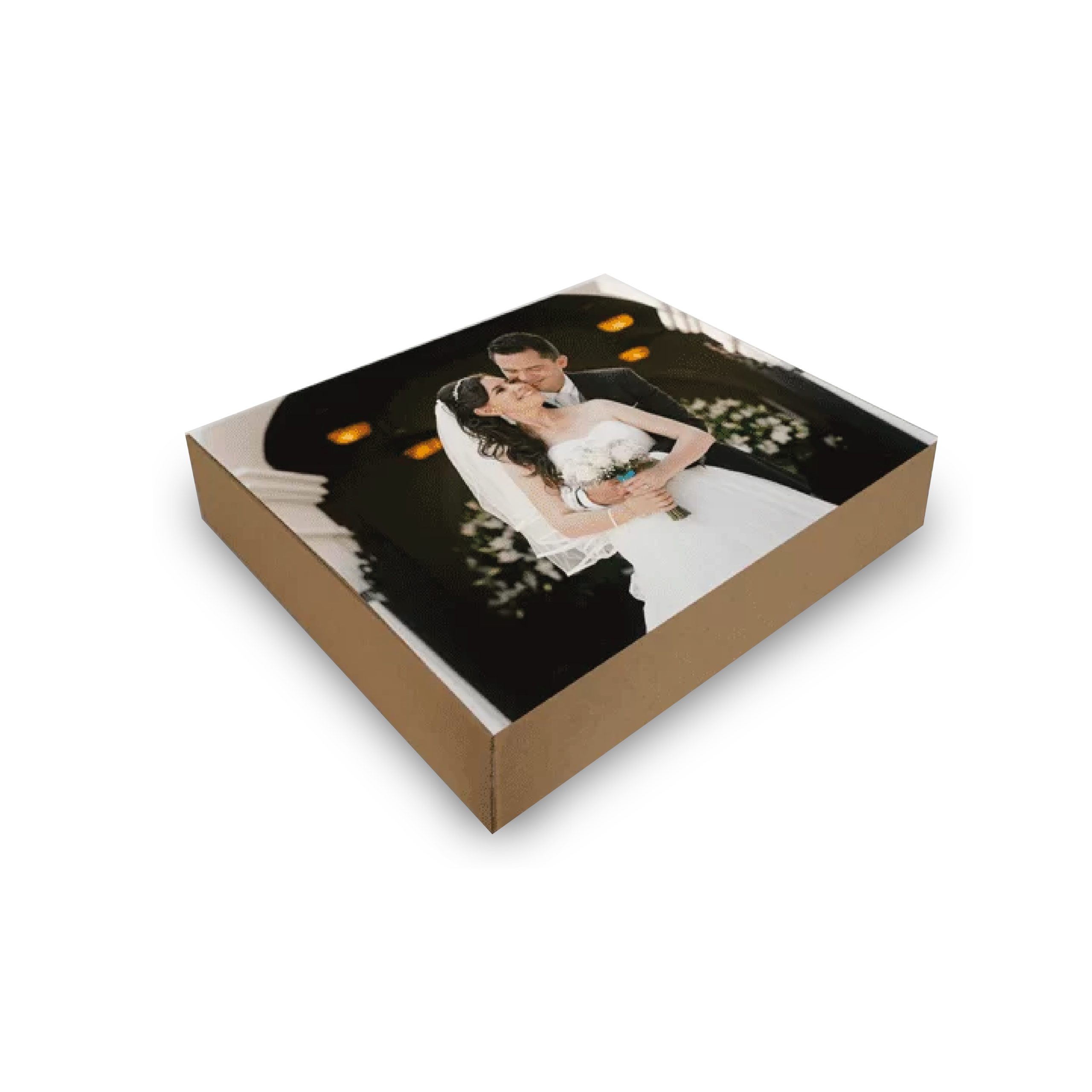 Caja personalizada tipo regalo de 15x15x10 cms fácil de abrir, puedes colocar una imagen o una frase en la tapadera. Usamos material reciclable, puedes elegir el color natural (café) o en color blanco.