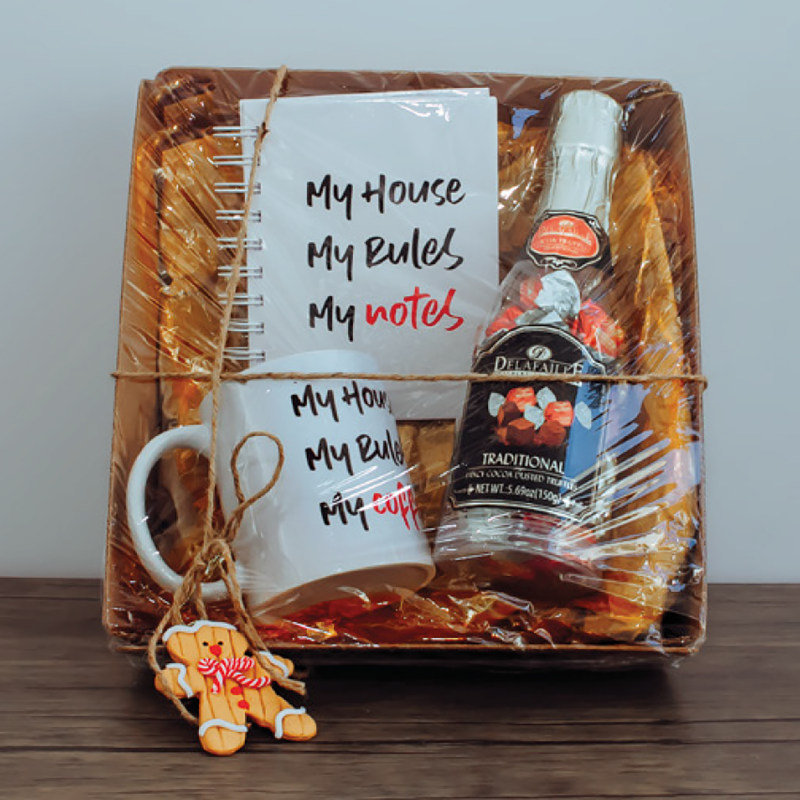 El Kit de regalo incluye una caja blanca de 9x6x4 pulgadas en Foldcote con viñeta personalizada, una agenda pasta dura tamaño 1/4 de carta y taza blanca personalizada. Perfecto para ocasiones especiales como cumpleaños, eventos o para promocionar tu marca.