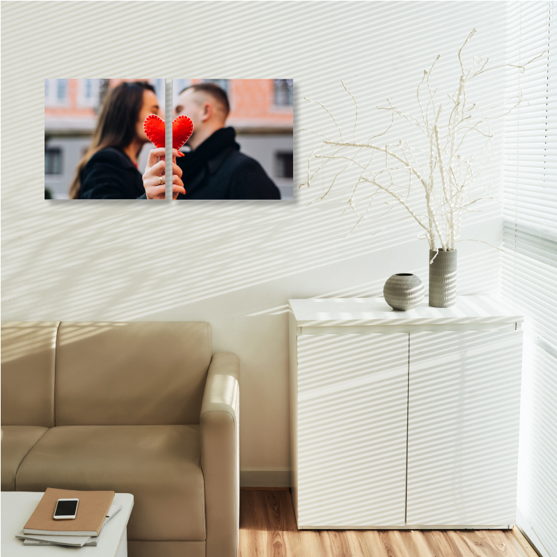 Es un cuadro de 16×16 pulgadas donde puedes colocar una fotografía o hacer un collage con imágenes para guardar el recuerdo de ese día especial con tu familia, amigos o tu pareja. La imagen se imprime en lona mate especial, la puedes limpiar fácilmente y absorbe la luz