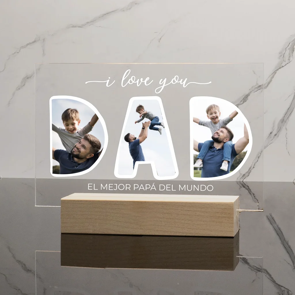 Acrílico con impresión UV full color medidas 20 cm de ancho y 17 cm de alto, con base en madera grabada para sostenerse. Perfecto para regalos, eventos, celebraciones o decoración del hogar.