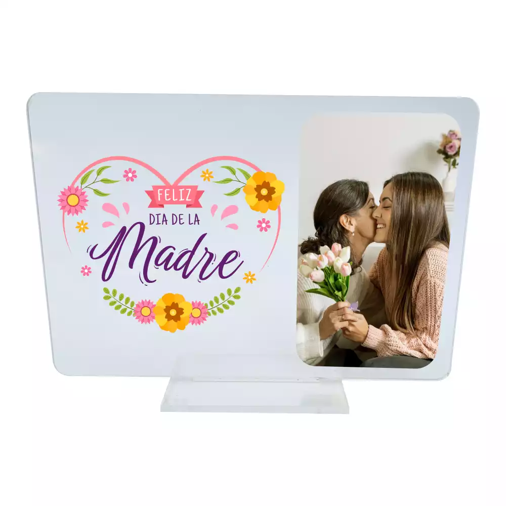 En este portarretrato personalizado podrás colocar tus fotografías y frases, te lo entregamos con un hermoso mini caballete de madera, para exhibirlo en tu casa u oficina. Medidas 25×21 cmts (precio incluye IVA y la base de madera).