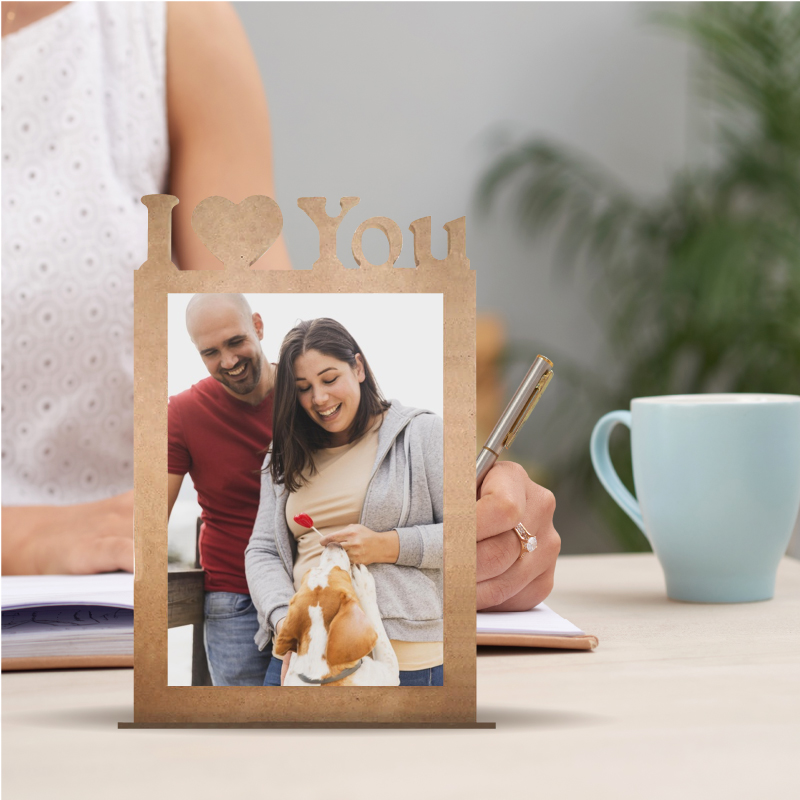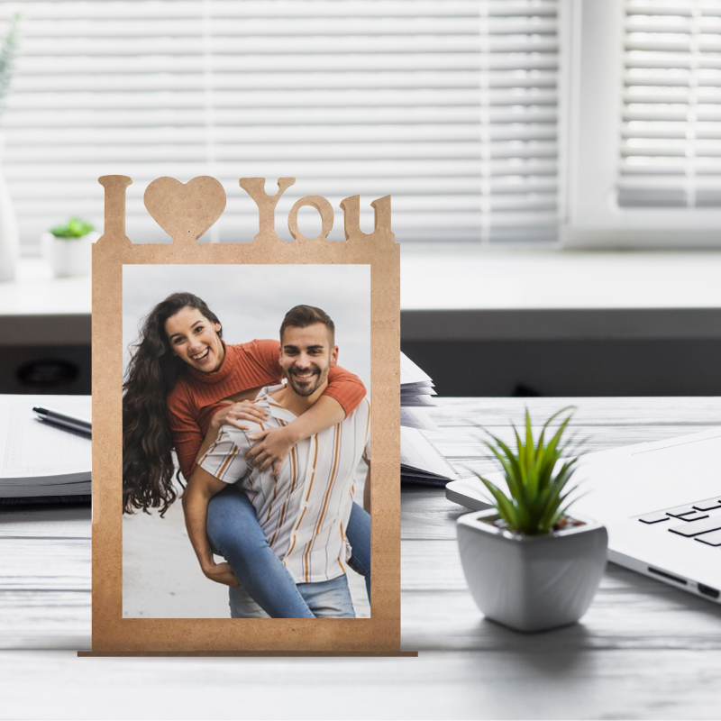 • Este hermoso portarretrato tiene un corte robotizado con las letras I love you.