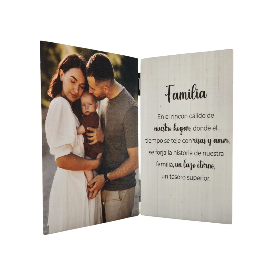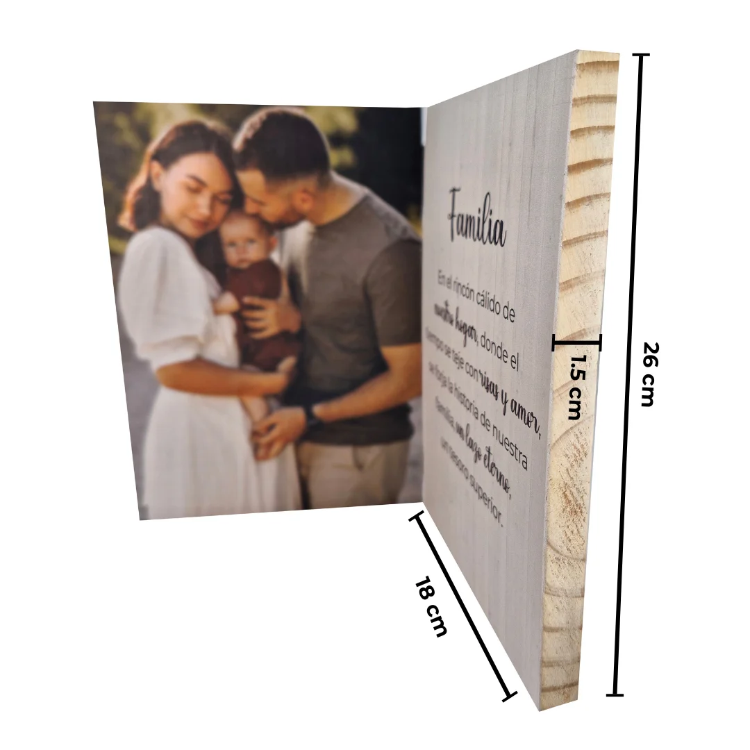 Medidas del portarretrato: 18 cm de ancho x 26 cm de alto y un grosor de 1.5 cm.