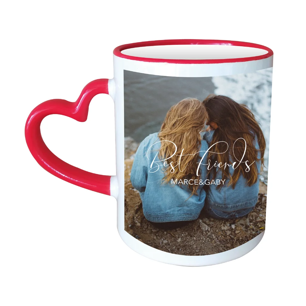 Taza blanca con capacidad para 11 onzas. Es un hermoso regalo que puedes obsequiar, con una o varias fotografías puedes crear tu propio diseño.